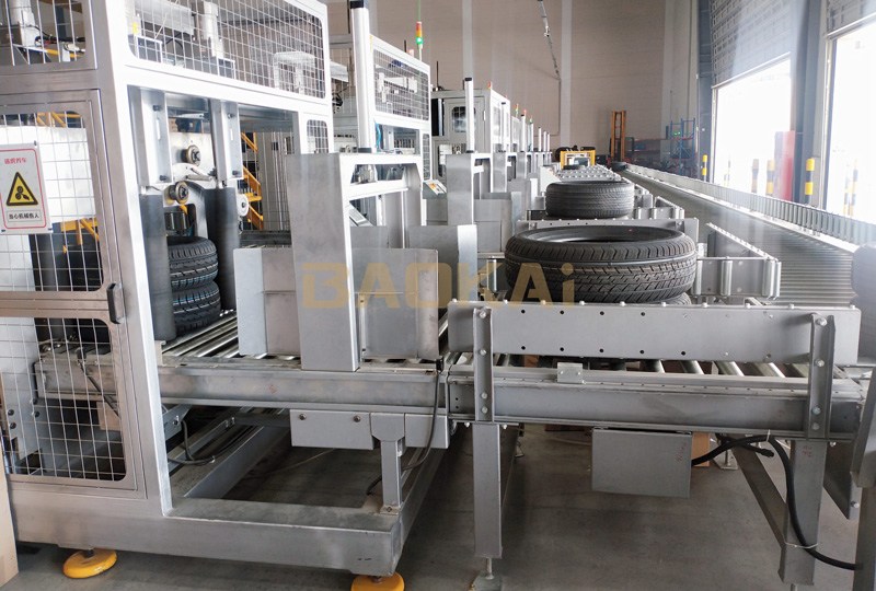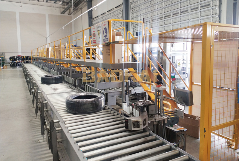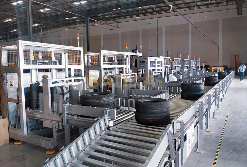 汽配行業新項目:集成了臥式環體打包機、輸送線、直角分合流等硬件設備;技術上實現了前置掃描到后置貼標的全程實時跟蹤,一期八臺打包機,可滿足480個輪胎/小時的打包效率,采用的分合流裝置,輸送效率可以滿足未來960個輪胎/小時的分合輸送效率。